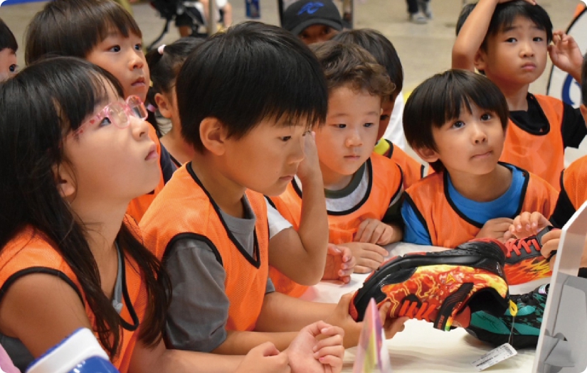「もっと速く走りたい!」子どもたちのそんな夢をかけっこ教室やシューズを通じて応援しています。最新モデルを中心とした、シューズの試履き体験実施など、子どもたちのサポートを行っていきます。