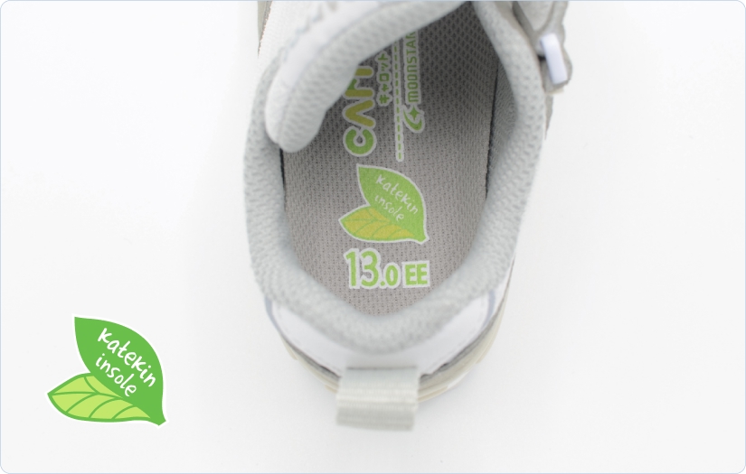 持続可能な社会の実現に向けて、環境マネジメントシステムを運用し環境関連業務、省エネ、省資源および廃棄物の削減など地球環境保全に配慮した取り組みを行っています。ベビー向けの商品には自然素材のカテキンを用いた抗菌防臭機能を搭載したり、ゴムや革の端材を再利用した素材の使用を積極的に行っています。環境配慮型の商品として、地球にも足にもやさしいシューズを提案しています。