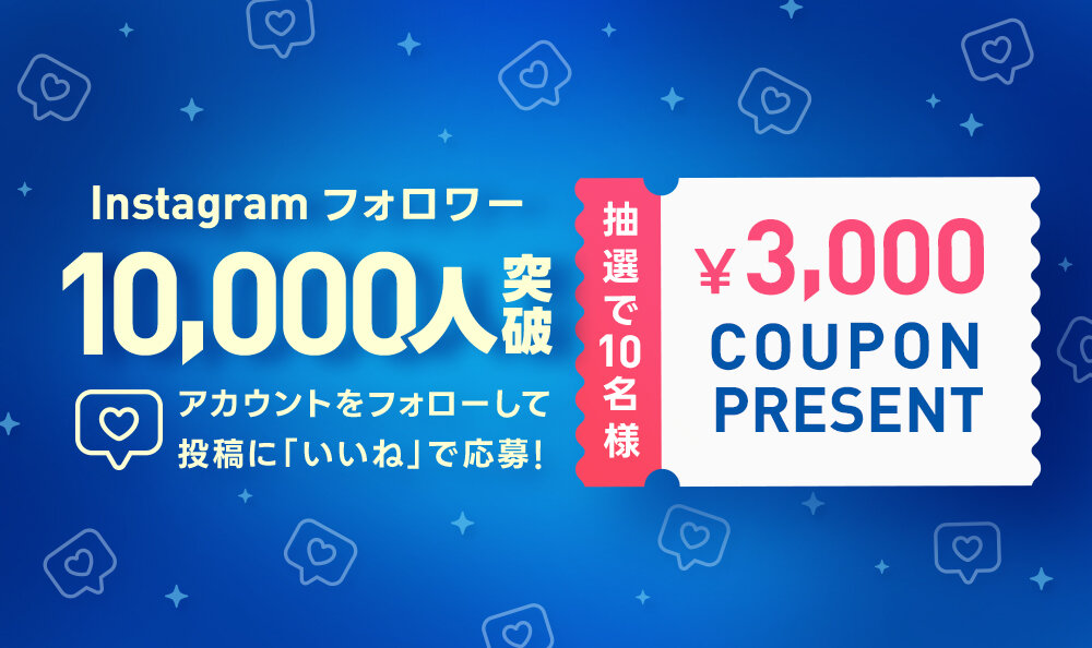 Instagramフォロワー1万人突破を記念してプレゼントキャンペーン開催します!