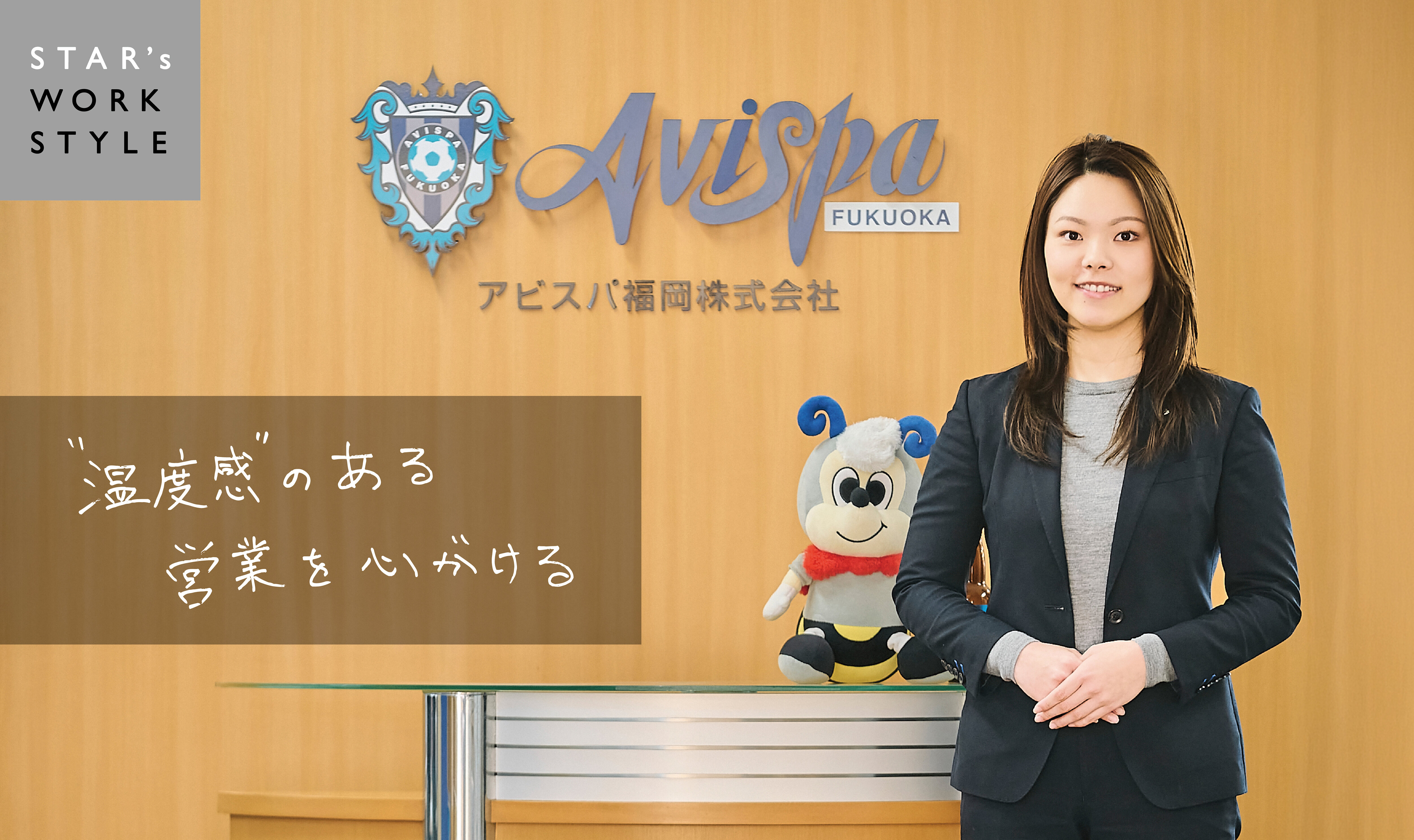 前職は、新卒で入った東京の投資用不動産会社の営業です。見知らぬ土地で知らない家に突撃で営業したり、1日300件のテレアポをかけるようなハードな社風で、結果もなかなか出せず、営業は自分には向かないしごとだと思い知って故郷の福岡へ戻りました。そして、縁あってアビスパ福岡に。最初は営業のサポート業務をしていたのですが、営業メンバーたちがとにかく生き生きしごとをしている姿を間近で見ていて、こんなに楽しそうな営業が存在するのかと、いい意味でカルチャーショックを受けたりしていました。根っこは負けず嫌いなので、前職でやり遂げられなかったモヤモヤを感じていたのもあって、もう一度、営業というしごとにチャレンジしたくなって、異動願いを申し出ました。