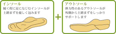 独自のインソールとアウトソールの2重構造で土踏まずをしっかりサポート