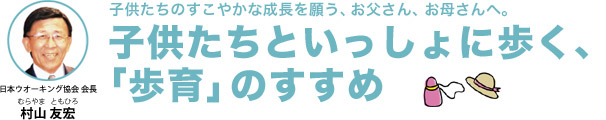 子供は本来、歩くことが大好きです。まずは近所の2km から。休日にはぜひ、自然の中へ「遠足」に出かけてくだ さい。子供の生き生きした笑顔を見つけてください。子供 と歩くことは、共に「人間らしさ」の原点に帰ることなの です。歩育は子供たちの将来の幸福の基礎となり、家庭 生活の幸福も高めてくれるに違いありません。